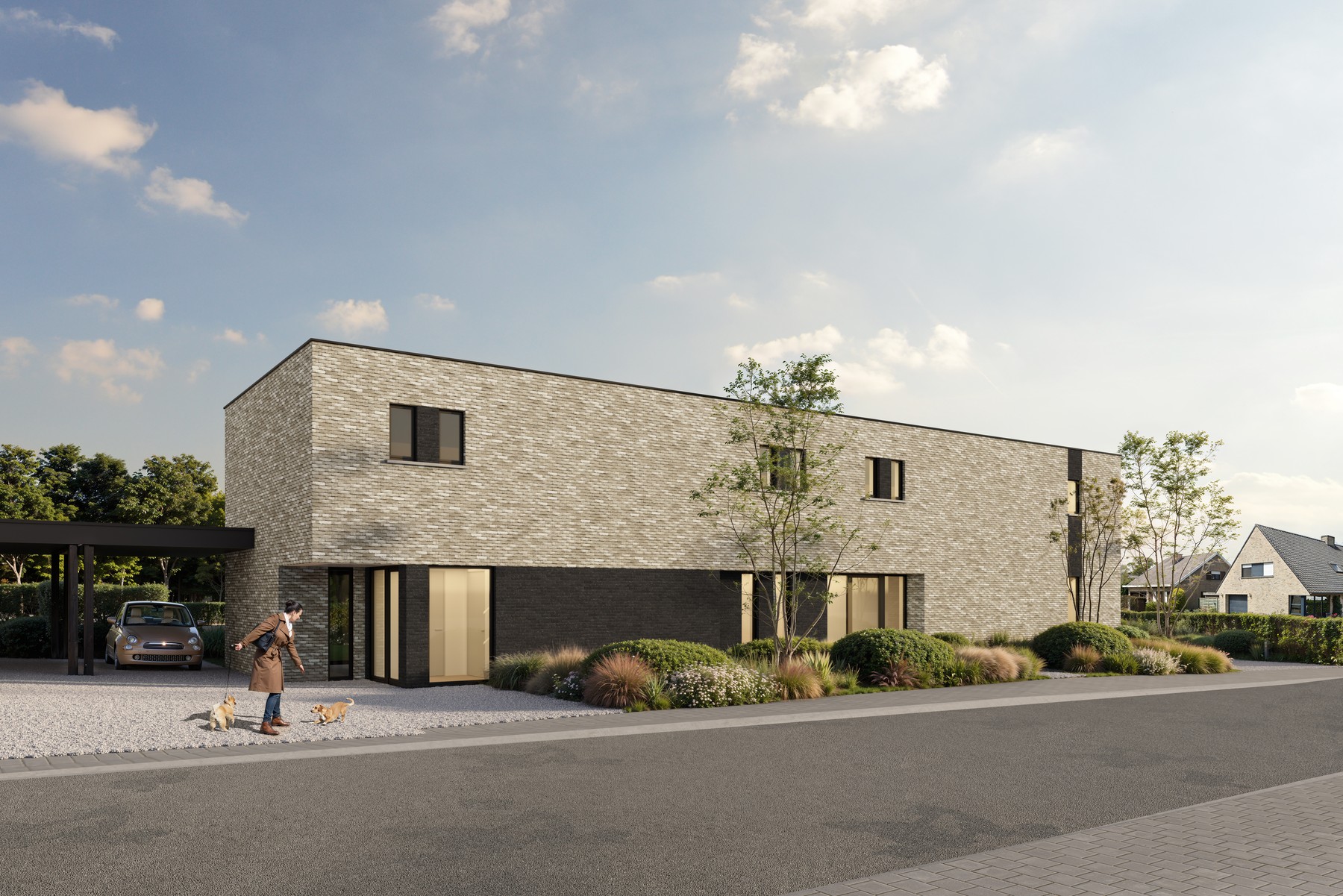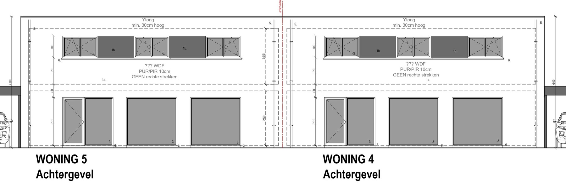Loten 4 en 5 worden opgericht met 2 bouwlagen + plat dak en carport.