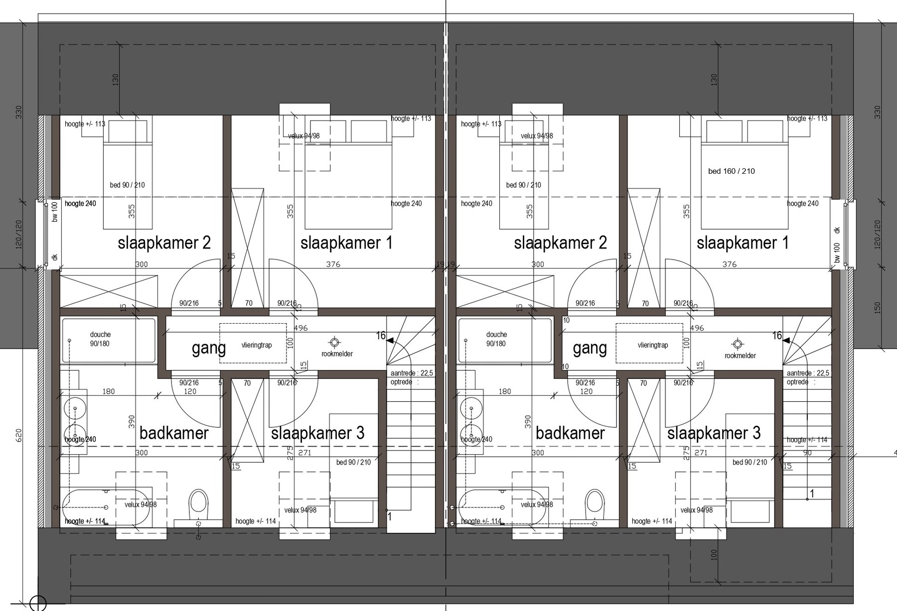 Op de bovenverdieping is er de nachthall, 2e afzonderlijk toilet, berging (loten 4&5), ingerichte badkamer en 3 slaapkamers.