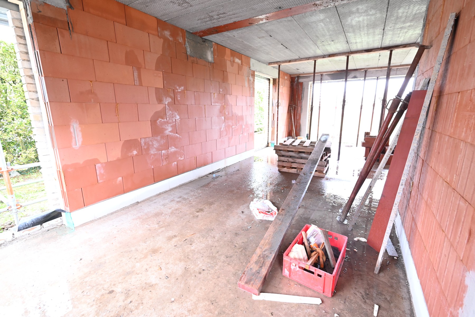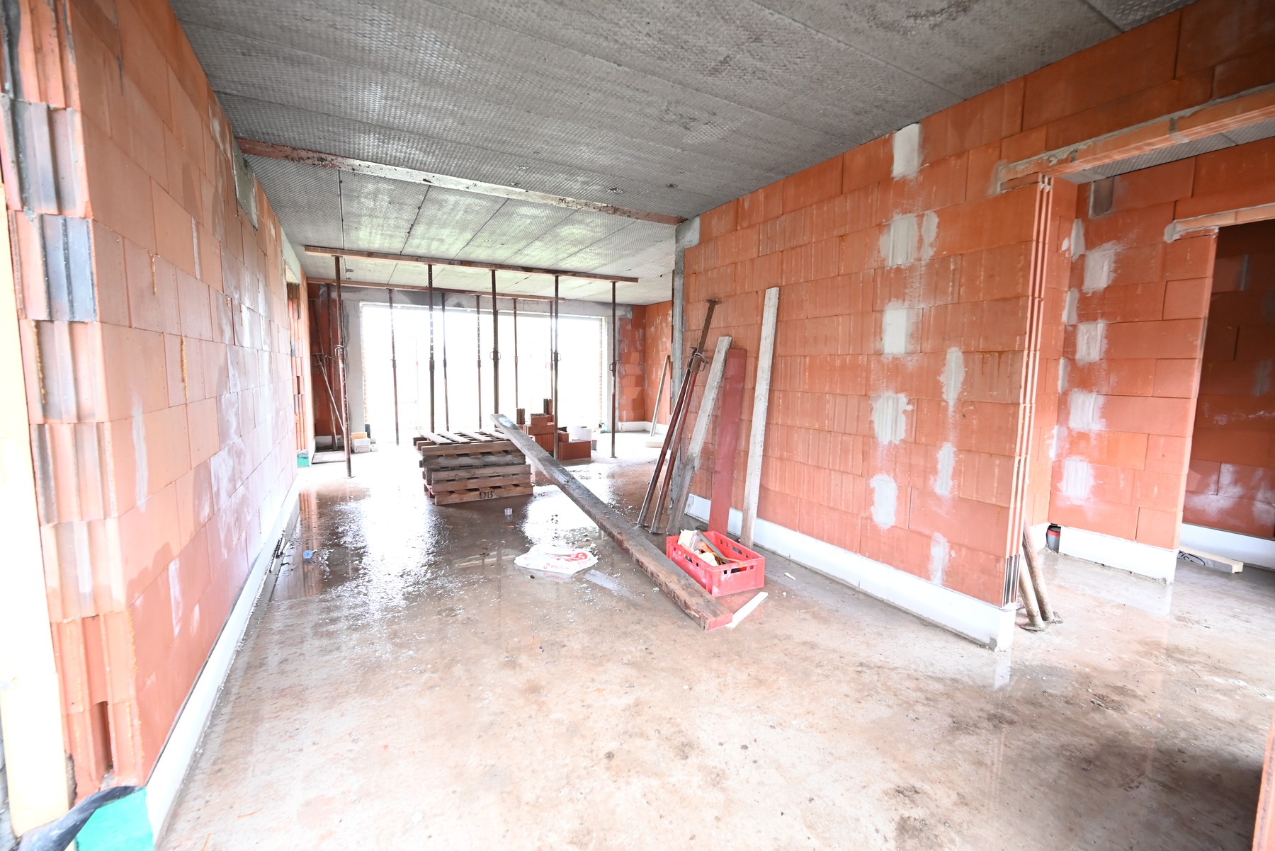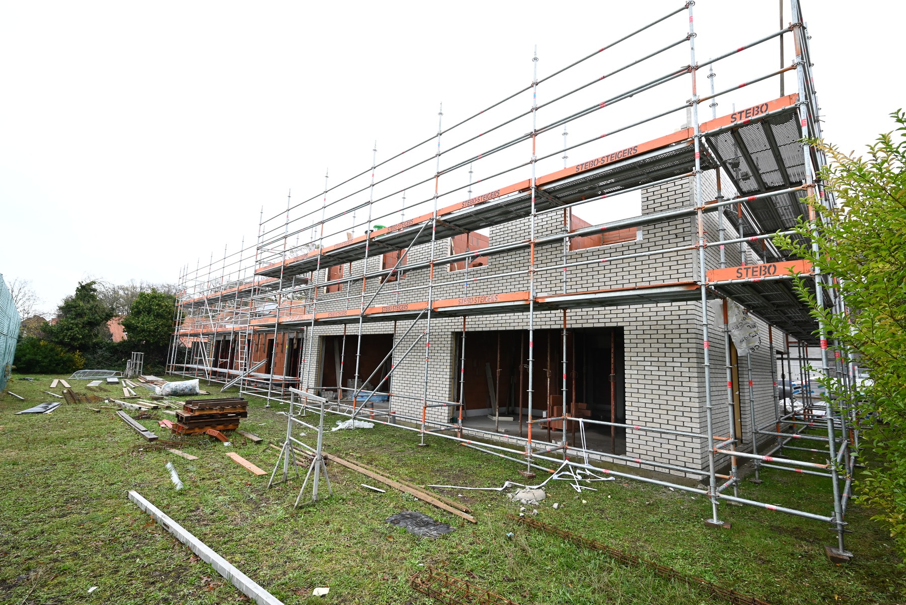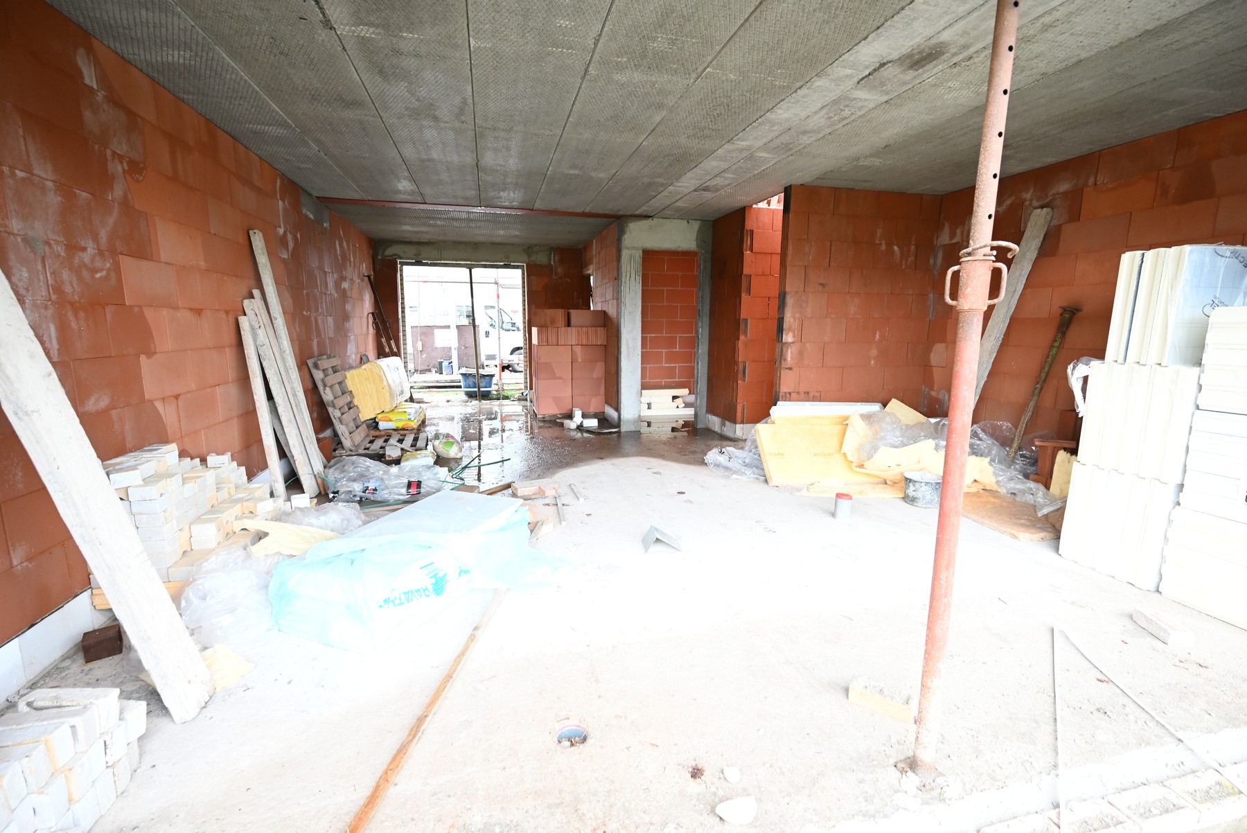 De woningen omvatten op het gelijkvloerse een inkomhal, afzonderlijk toilet, lichtrijke woonkamer met open ingerichte keuken en berging.
