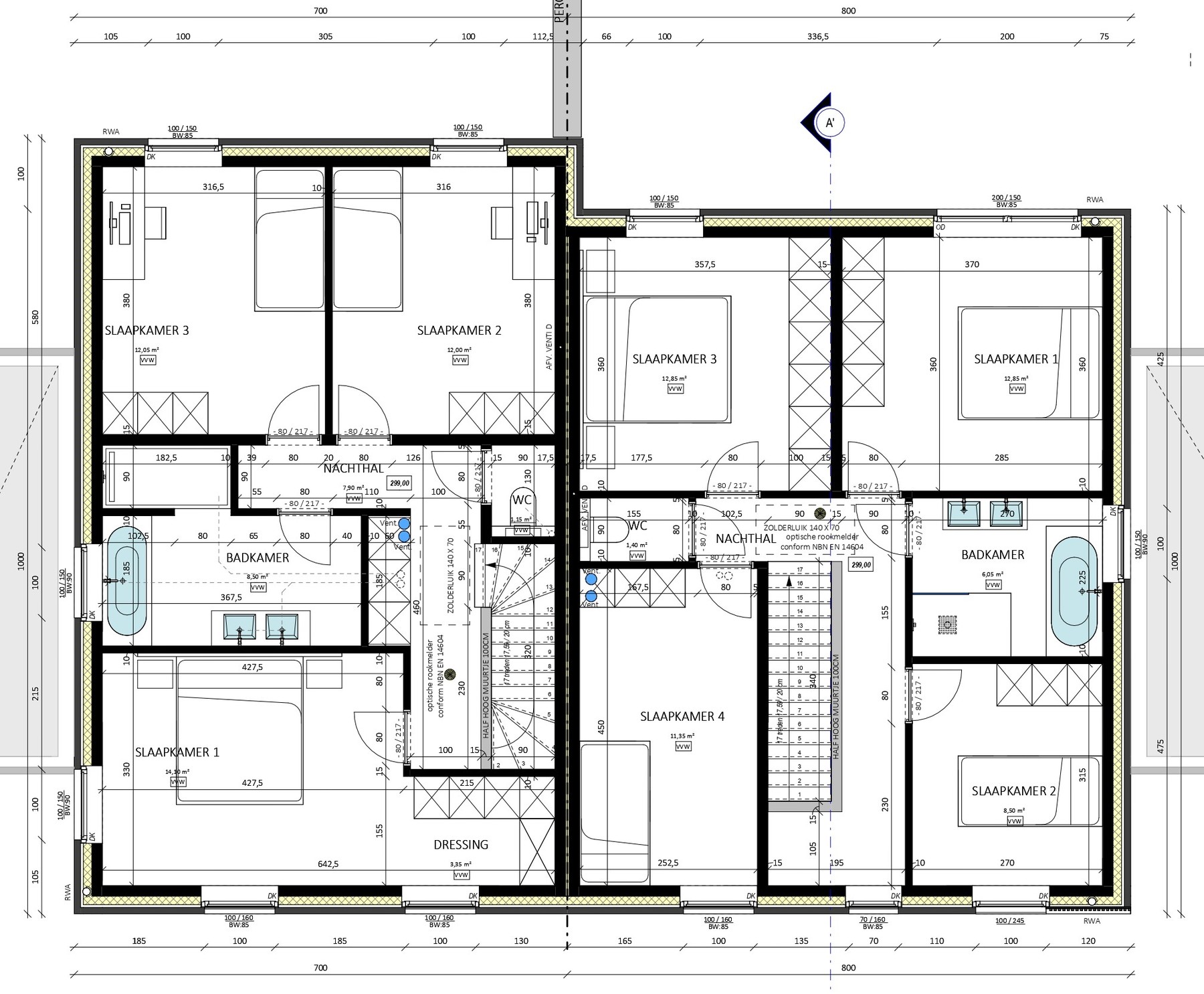De bovenverdieping heeft 3-4 slaapkamers, een 2e apart toilet en een ingerichte badkamer.