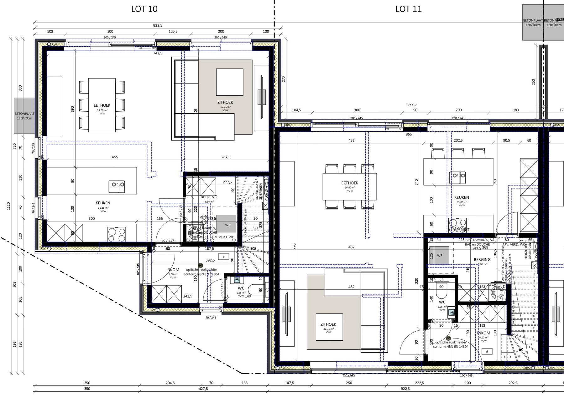 Er wordt 1 open bebouwing (lot 9), 2 gesloten bebouwingen (loten 11 en 12) en 10 halfopen bebouwingen voorzien.